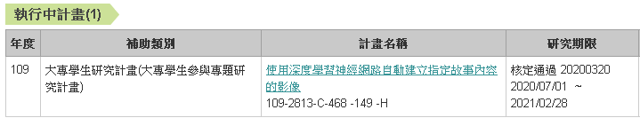 ◈ 通過科技部大專生研究計畫