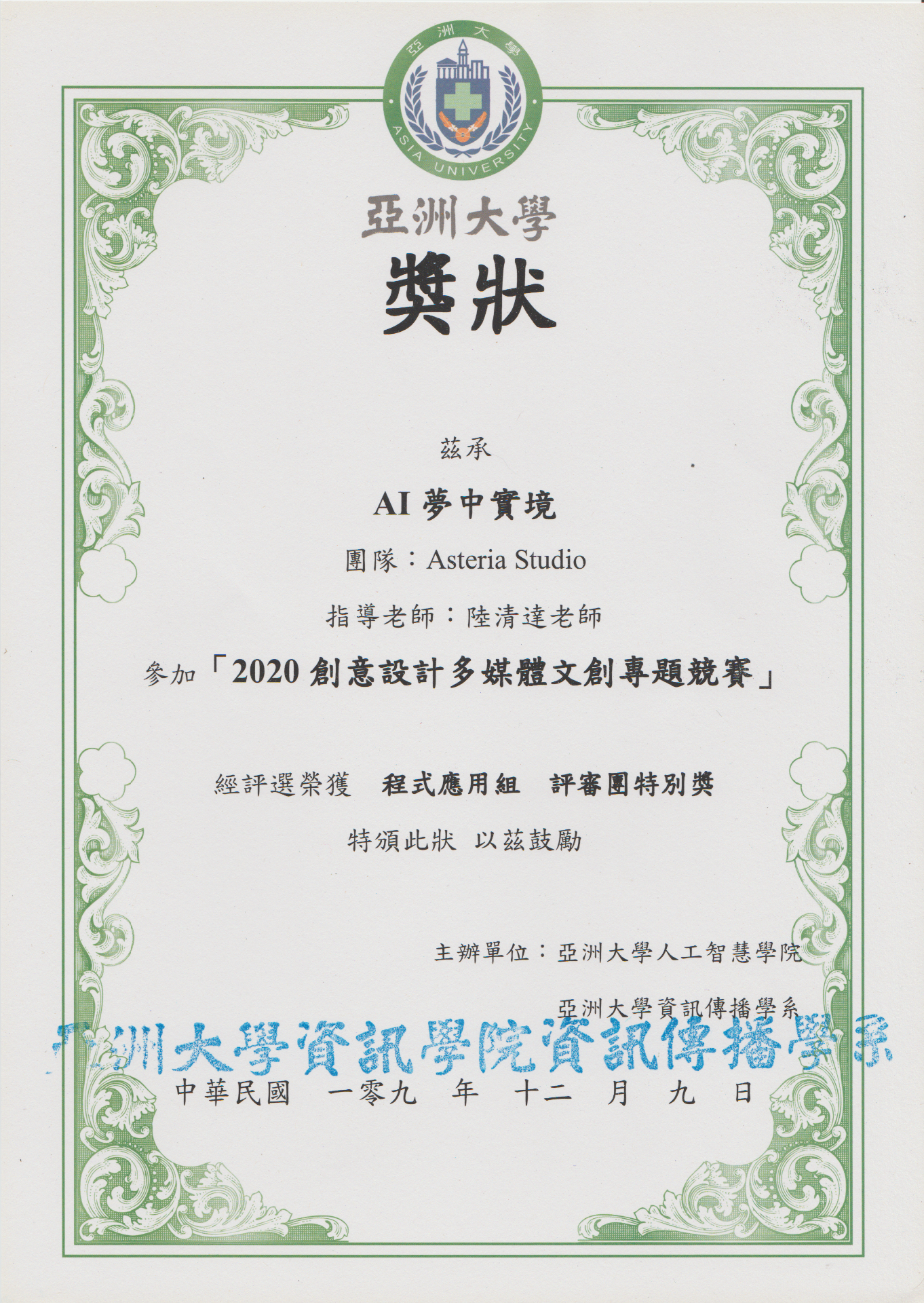 獲得程式應用組—評審團特別獎